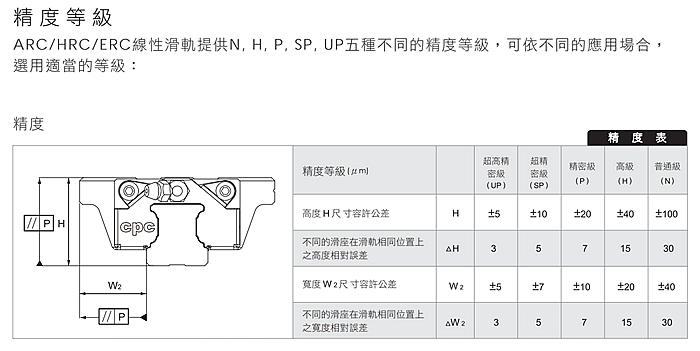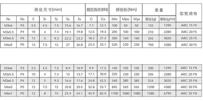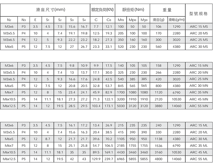 CPC標(biāo)準(zhǔn)型滾珠直線導(dǎo)軌ARC系列采用O型排列四列式滾珠循環(huán)設(shè)計(jì),滾珠軌道面與滾珠接觸角為45度,可達(dá)到四方向等負(fù)荷之效果。CPC特別在設(shè)計(jì)上加強(qiáng)力臂Lo的長(zhǎng)度,故在承受相同外力F時(shí),有更高的Mr值以提高剛性及抗扭矩能力方面之表現(xiàn)。此外同機(jī)型滑座中選用較大尺寸的鋼珠及較多鋼珠數(shù),在負(fù)荷能力的表現(xiàn)上更是多出競(jìng)爭(zhēng)對(duì)手10%~30%充分展現(xiàn)高負(fù)荷、高扭矩、高剛性功能。