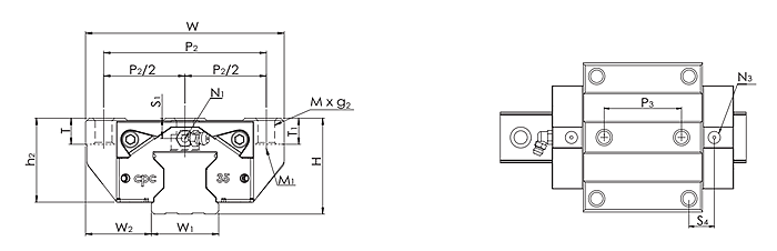 H W2 W1 H1 P D×d×g1 W L L1 h2 P1 P1/2 P2 P2/2 P3 M×g2 M1 T T1
