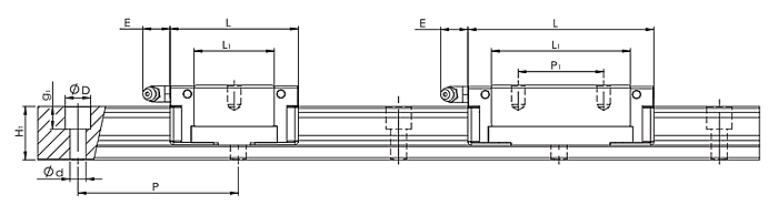 型號 組裝尺寸 導軌尺寸(mm) 滑塊尺寸(mm)