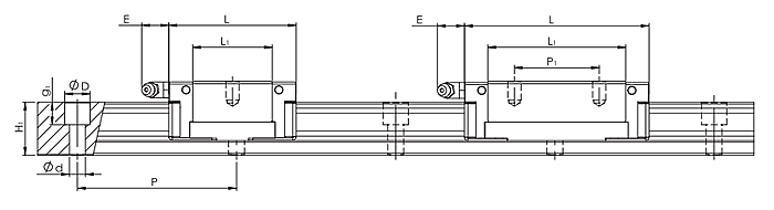 型號 組裝尺寸 導(dǎo)軌尺寸(mm) 滑塊尺寸(mm)