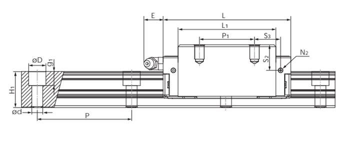 | N2 | N3 | E | S1 | S2 | S3 | S4 | C | Co | Mro | Mpo | Myo | 滑塊(g) | 導軌(g/m) | |