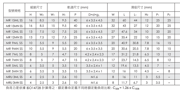 MR直線導(dǎo)軌采用二列式滾珠循環(huán)設(shè)計(jì), 滾珠槽取接觸角為45度的哥德式結(jié)構(gòu), 能實(shí)現(xiàn)四向等載荷。直線導(dǎo)軌在有效空間限制下,使用了較大直徑的鋼珠, 從而實(shí)現(xiàn)直線導(dǎo)軌高載荷、高扭矩功能。