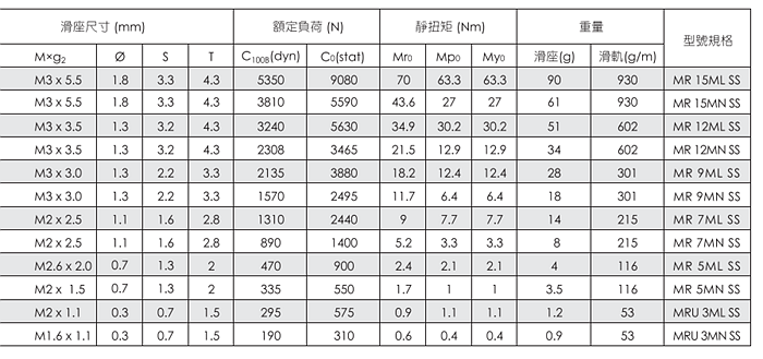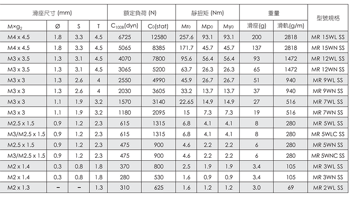 MR直線導(dǎo)軌所有鋼材組件無論是直線導(dǎo)軌、滑座鋼體或鋼珠皆使用經(jīng)淬透熱處理之不銹鋼材質(zhì)。