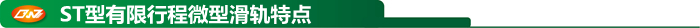 ST型有限行程微型滑軌展現(xiàn)非常優(yōu)越的運(yùn)行平穩(wěn)度,因?yàn)檫\(yùn)行中,鋼珠不循環(huán),不產(chǎn)生振動,所以運(yùn)行精度高、摩擦阻力低。